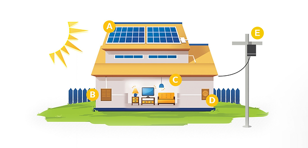 A energia que sai do inversor é consumida em casa ou nas empresas, suprindo lâmpadas, eletrodomésticos e todos os outros aparelhos elétricos.